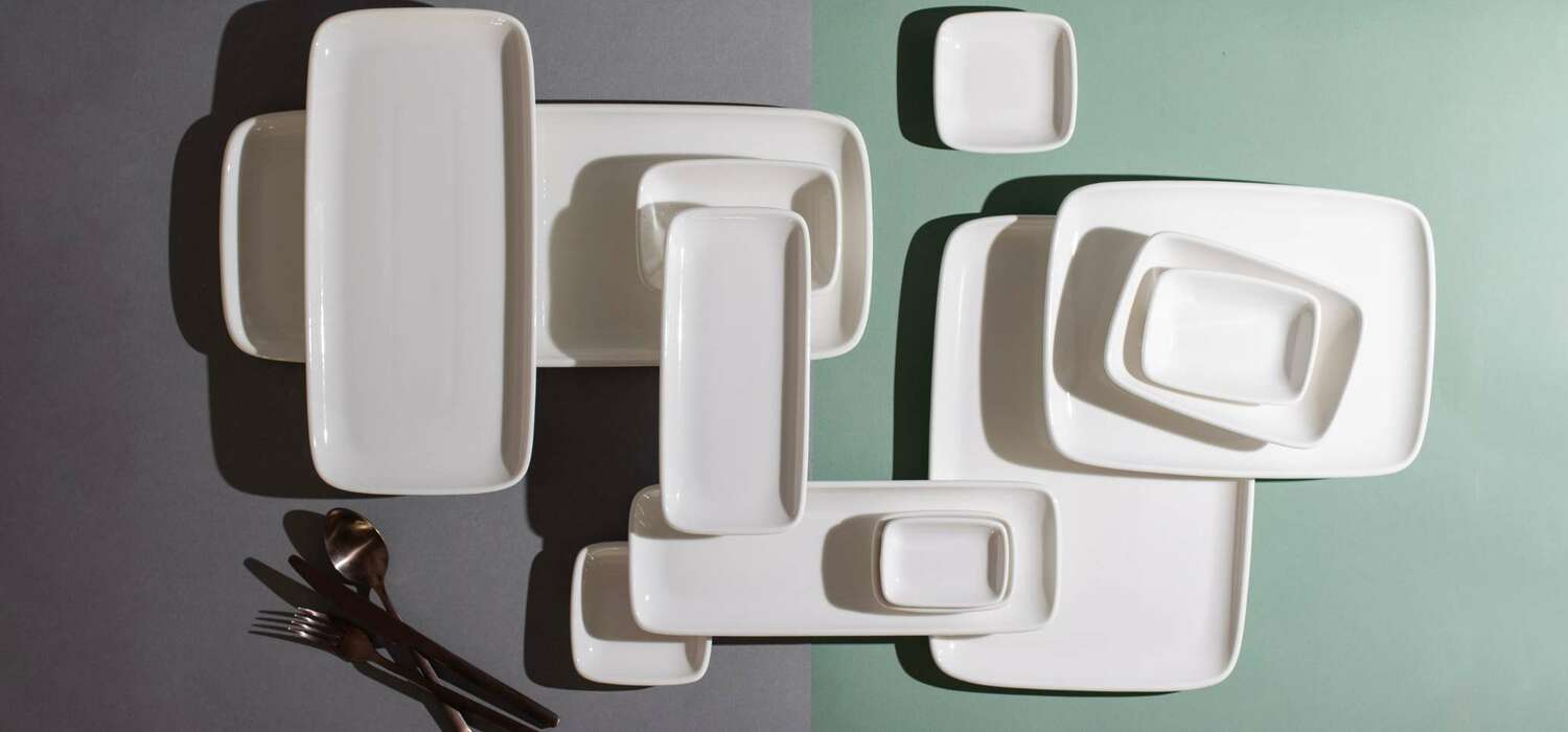 Белая серия прямоугольных блюд.