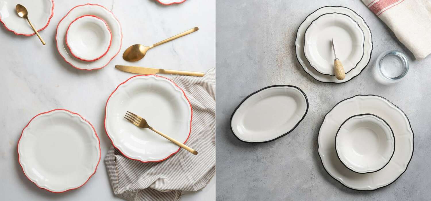 Элегантные формы, мягкие линии и легкая волна края изделий с цветным кантом.