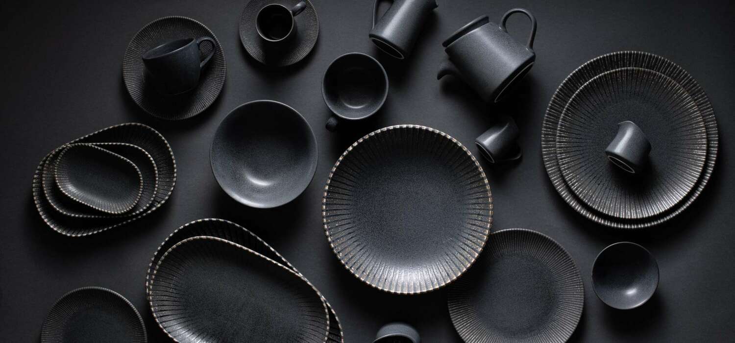 Черная матовая коллекция в винтажном стиле, декор выполнен в технике реактивной глазури.